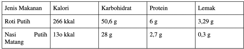 Banyak yang mengira roti lebih “ringan” dibanding nasi, padahal faktanya bisa sebaliknya.